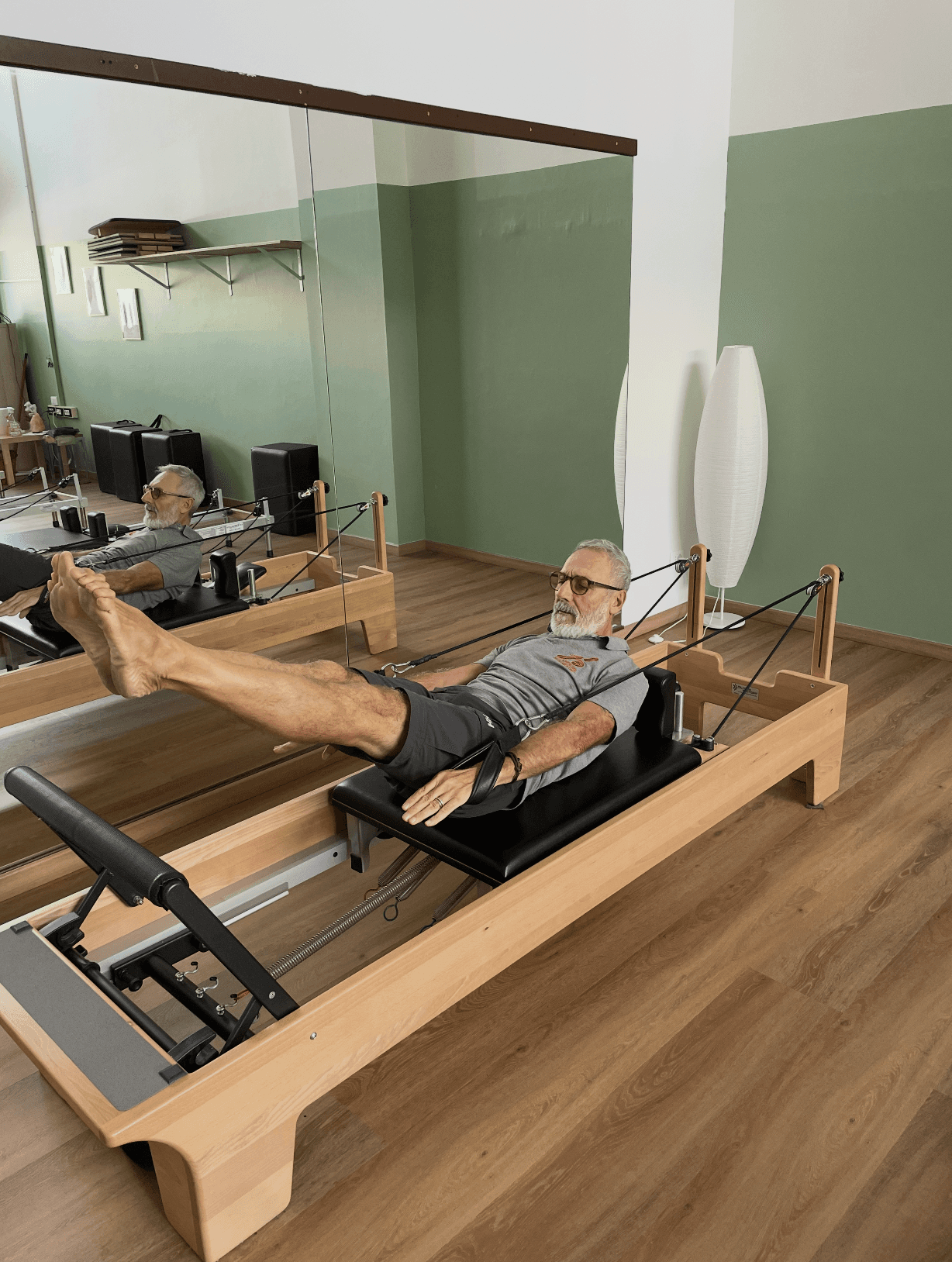 Allenamento completo su macchinario Reformer per tonificare, migliorare la postura e rafforzare il core in modo efficace e controllato.